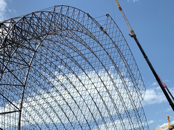 (2)网架加工前应对现场尺寸进行复测,确认无误后方可进行加工、安装;网架制作、运输、安装应遵守《空间网格结构技术规程》JGJ7-2010、《钢网架信阳螺栓球节点》JG/T 10-2009、《钢网架信阳螺栓球节点用高强度螺栓》 GB/T 16939-2016、《信阳钢结构信阳工程信阳施工规范》 GB50755-2012、《信阳钢结构信阳工程施工质量验收标准》 GB50205-2020。